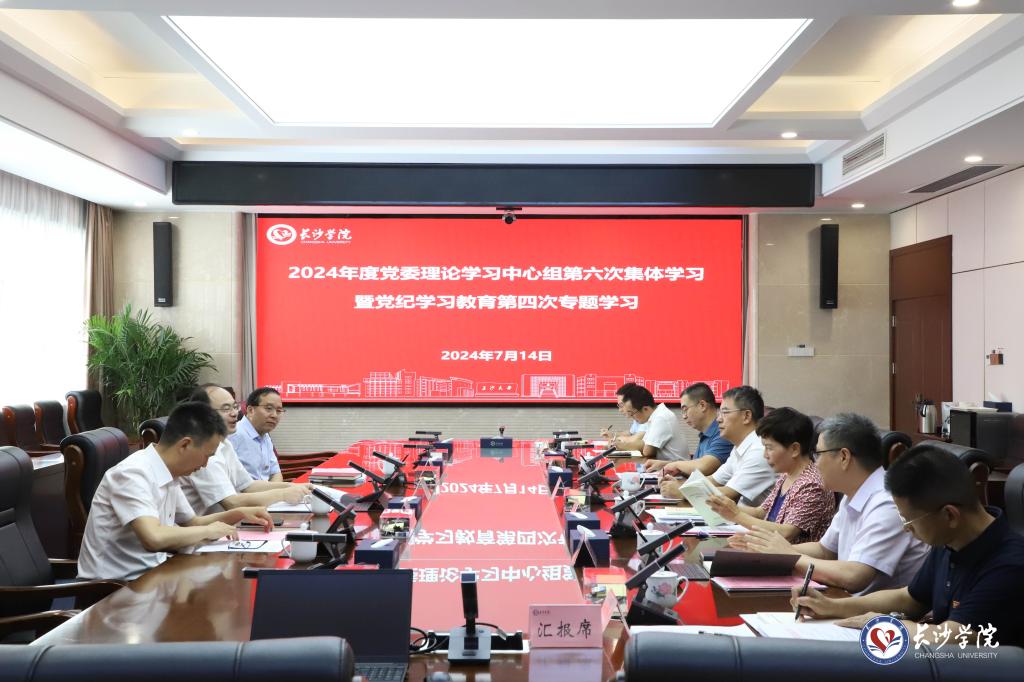 7月14日上午,学校在长盛楼4001举行党委理论学习中心组2024年第六次集体学习暨党纪学习教育第四次专题学习,传达学习习近平总书记在主持二十届中共中央政治局第十五次集体学习时发表的重要讲话精神,深入学习贯彻习近平总书记关于全面加强党的纪律建设的重要论述,持续抓紧抓实以案促学、以案促改、以案促治,深入推进党纪学习教育,为推进学校高质量发展提供坚强的纪律保证。党委书记杨小云主持会议并作总结讲话。校长陈赤平及全体校领导,党政办、组织统战部、宣传部、纪委办主要负责人参加学习。