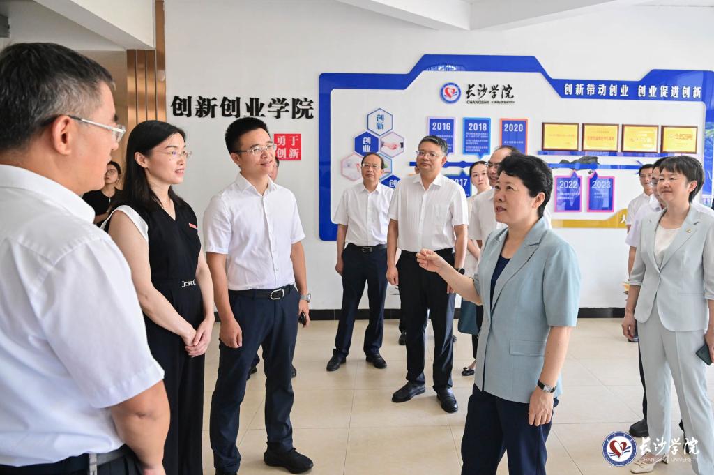 吴桂英考察了长沙学院大学生创新创业孵化基地,要求聚焦青年创业需求、搭好服务平台、彰显学科特色,充分发挥扶持创业、带动就业等方面的积极作用,为更多大学生和青年人才创新创业铺路搭台。