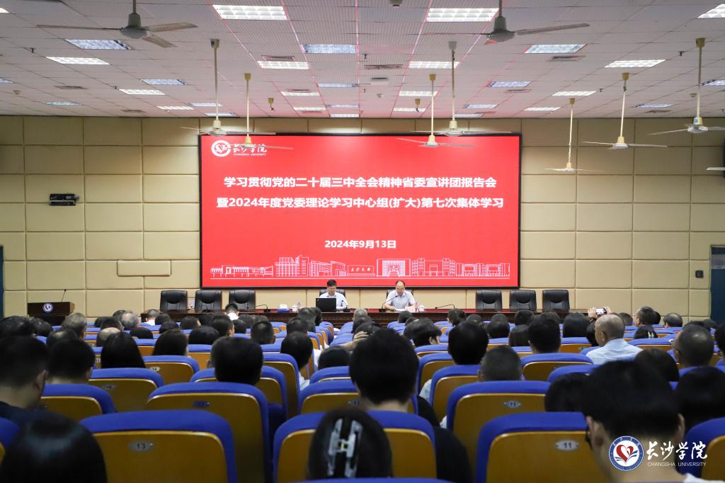 9月13日上午,学习贯彻党的二十届三中全会精神省委宣讲团报告会暨校党委理论学习中心组(扩大)第七次集体学习在致远楼学术报告厅召开。省委宣讲团成员、省委党校科学社会主义教研部副主任戴辉礼教授,为我校师生作学习贯彻党的二十届三中全会精神专题宣讲。党委书记杨小云主持会议。