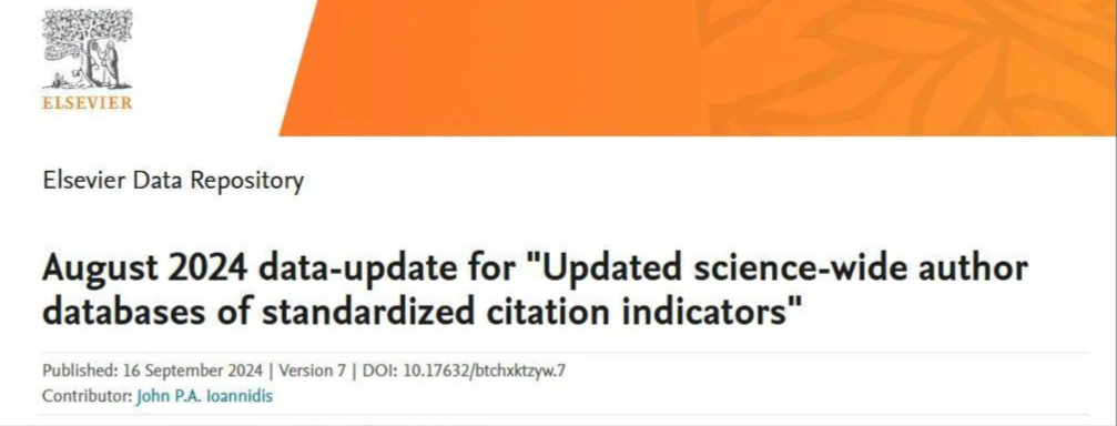 “全球前2%顶尖科学家榜单”分为两个排行榜:“终身科学影响力排行榜(1960-2024)”统计科学家职业生涯期间的综合影响表现,“2024年度科学影响力排行榜”集中于科学家上一年度的学术影响力。该榜单基于Scopus数据库的引用数据系统分析,使用六种关键因素指标进行打分,包括总引用量、H指数(Hirsch H-index)、共同作者修正的Schreiber Hm-index、单独作者、单独或者第一作者,以及单独、第一或者最后作者的文章引用量。该榜单基于全球约一千万科学家的论文发表与引用情况,反映科学家的产出量和学术影响力,收录了来自22个学科领域、174个子学科领域全球排名前2%的科学家。
