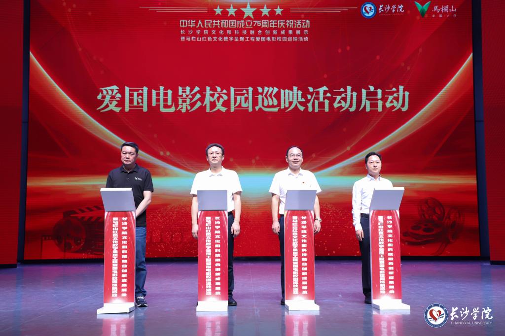 当天,我校举办了“科文融合·经典焕彩”文化和科技融合创新成果展示暨马栏山红色文化数字呈现工程爱国电影校园巡映活动。省委教育工委委员、省教育厅党组成员、副厅长兰勇,省委宣传部宣教处一级调研员曾智山,马栏山(长沙)视频文创园党工委书记曾雄,我校党委书记杨小云,党委委员、副校长张世英及长沙马栏山投资开发建设有限公司、潇湘电影集团有限公司、巡映院校单位有关领导出席活动。