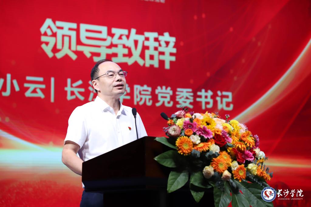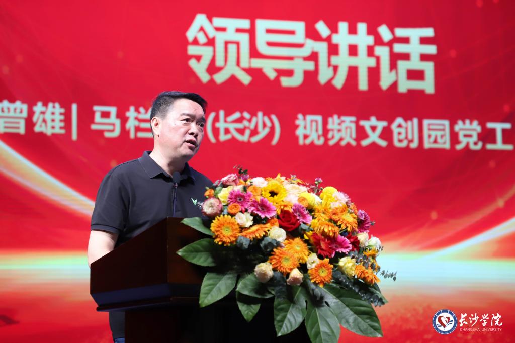 曾雄在讲话中表示,文化和科技的双向奔赴,推动了动漫游戏、数字内容创意、数字出版、数字文博、内容电商等一大批新型文化业态在马栏山蓬勃发展,期待深化校地合作,与长沙学院共绘文化和科技融合新篇章。