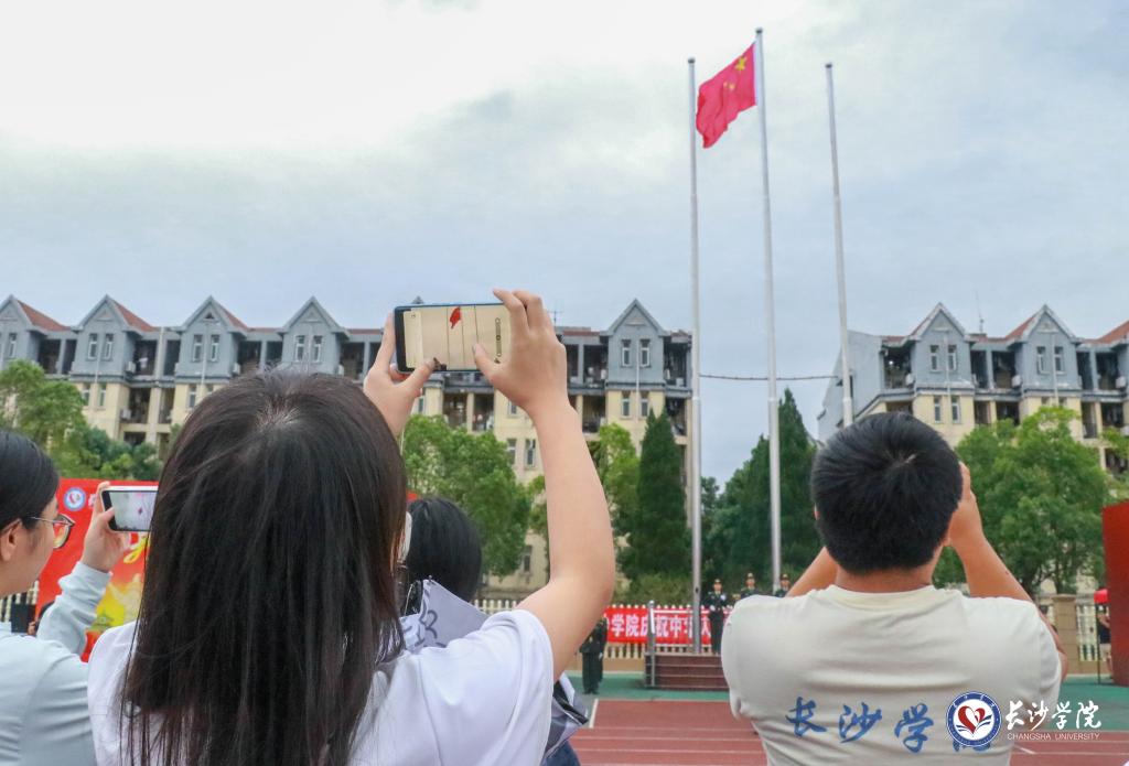 “我和我的祖国,一刻也不能分割……”升旗仪式后,《我和我的祖国》歌声响起,悬挂国旗的无人机腾空而起,在高空为祖国送上了最美的祝福。师生们纷纷拍照留念,记录下这激动人心的难忘时刻。“这是我在长大度过的第一个国庆节,今天能和老师同学们一起共庆新中国75周年华诞,我非常激动,回望祖国75年来的奋斗历程,我深感骄傲。我将用自身所学积极建功立业,努力报效祖国。”土木工程学院2024级工程造价专业冯志超说。