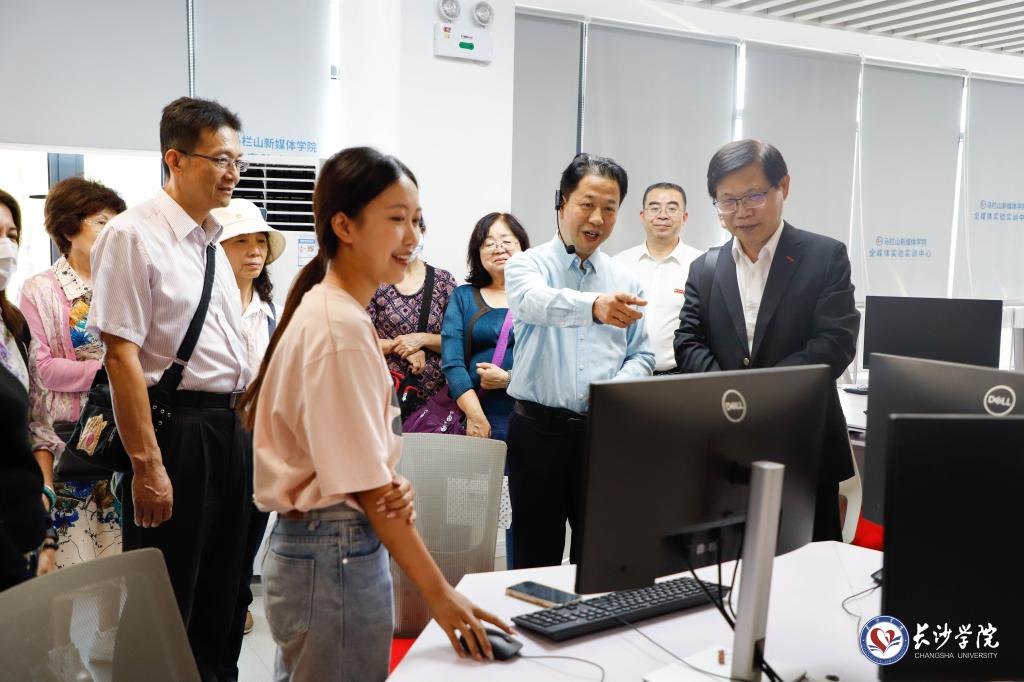 会前,学术交流团一行参观了马栏山新媒体学院全媒体实验实训中心、短视频工厂和艺术设计学院“红剪坊”剪纸文化艺术传承基地。