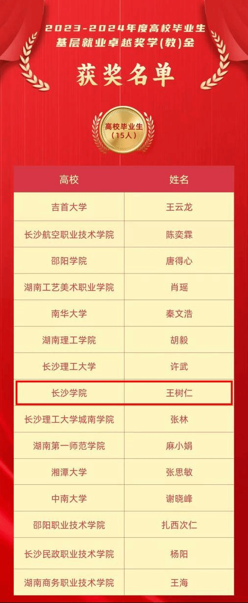 近日,教育部公布了2023—2024年度“高校毕业生基层就业卓越奖学(教)金”获奖名单,我校2017届法学专业毕业生王树仁入选,是我校毕业生首次获得该荣誉。