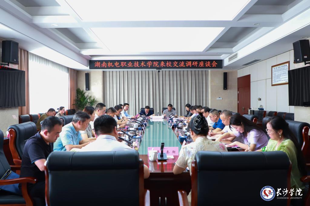 5月30日上午,湖南机电职业技术学院党委书记伍光强,党委副书记、院长邓奕等一行到我校交流调研。校长陈赤平,党委委员、副校长何利华出席座谈会。会议由何利华主持。