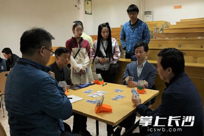 “我现在还能游泳,说明身体还行;还能打桥牌,说明脑子还行。”当年年事已高的邓小平的这一句话激励着一批又一批桥牌爱好者。今日上午,“十市百校校园桥牌普及活动”第38站走进长沙学院,活动吸引了长沙学院师生及桥牌爱好者等200余人来到现场。