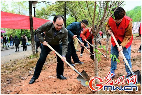 4月11日下午,长沙学院土木工程学院学子和校领导在该校网球场旁一起栽下“土木林”活动的第四片树林——红梅冬林,这些苗木均由师生们自己出资购买。