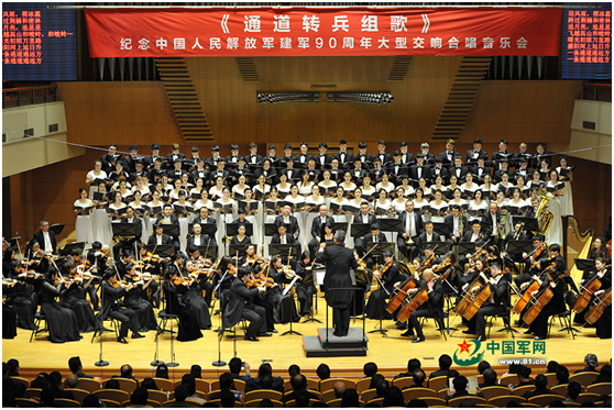 为纪念中国人民解放军建军90周年,由中国音乐家协会、中国交响乐发展基金会、湖南省文化厅、湖南省文联、湖南省演艺集团共同主办,湖南交响乐团承办,湖南省音乐家协会协办的大型交响合唱音乐会《通道转兵组歌》今晚在京首演。