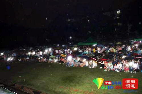 中国青年网长沙5月23日电(实习记者 朱洁云)5月22日晚7点30,由共青团长沙市委、长沙学院校团委主办的草坪音乐电影节在长沙学院前坪广场拉开帷幕。据了解,草坪音乐电影节是长沙市“微影行”微电影大赛的宣传蓄热活动之一,独创正能量微电影户外推广与高校音乐交流融合,歌颂了“点赞青春,向上向善”主题。