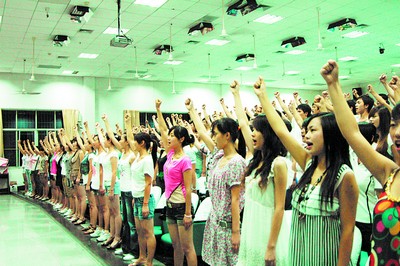 参加此次比赛的会计学院的30位新生,他们白天忙军训,晚上忙排练,没有一丝怨言。工商管理学院市场营销专业0704班的罗丽娜非常喜欢唱歌,她平时在课外挤出时间排练,为了达到满意的效果,她会在寝室对着镜子一遍又一遍地练动作,找同学来听自己唱,帮她找出不足。"希望通过合唱比赛展现出我们的精神风貌和学院风采。"