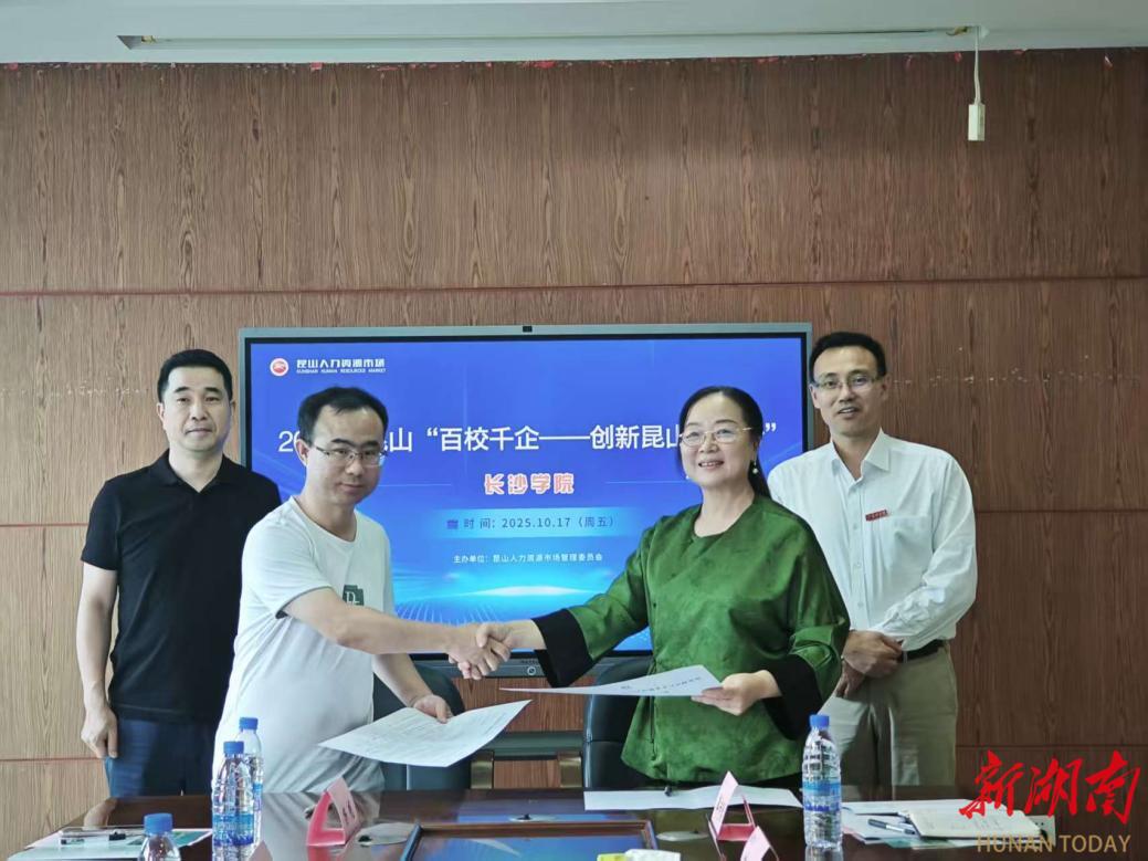 10月17日,长沙学院与昆山市人力资源市场校政企座谈交流会暨专场双选会“双线发力”,为电信学院毕业生搭建“家门口”的就业平台。上午10时,座谈会在长沙学院举行。招生与就业指导处处长黎文普致辞,介绍学校人才培养与就业服务优势。昆山人力资源市场党委副书记、管委会副主任许继华携本地重点企业代表与学校三大学院负责人围绕校企合作展开交流。会上,学院与昆山丘钛微电子科技股份有限公司、昆山沪光汽车电器股份有限公司、昆山佰奥智能装备股份有限公司签订“长沙学院就业实习实践基地”协议。