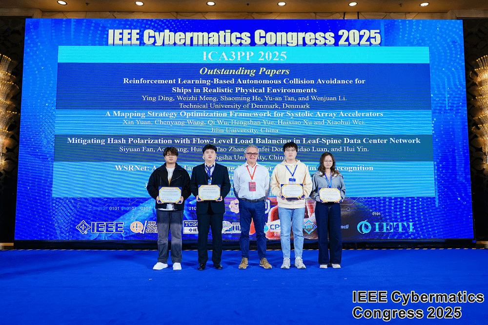 近日,在河南郑州举办的2025年IEEE国际人机物智能大会上,长沙学院计算机科学与工程学院23级本科生樊思远团队凭借创新研究成果斩获殊荣,其牵头完成的论文《Mitigating Hash Polarization with Flow-Level Load Balancing in Leaf-Spine Data Center Network》从全球600余篇投稿中突围,获评大会仅设4项的优秀论文奖(Outstanding Paper Award)。这是学院本科生学术论文首次摘得此类国际奖项,标志着学院人才培养与科研创新能力获国际学术组织高度认可。