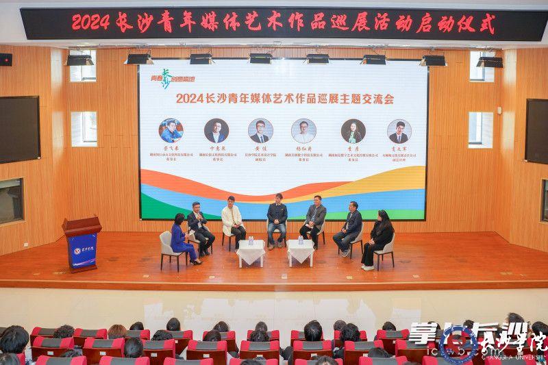 现场,与会领导嘉宾共同点亮“媒体艺术之光”,启动“青春长沙 创意高地”2024长沙青年媒体艺术作品巡展活动。在长沙学院巡展专场中,青年、艺术家们用一幅幅作品展现长沙作为世界“媒体艺术之都”的独特魅力。