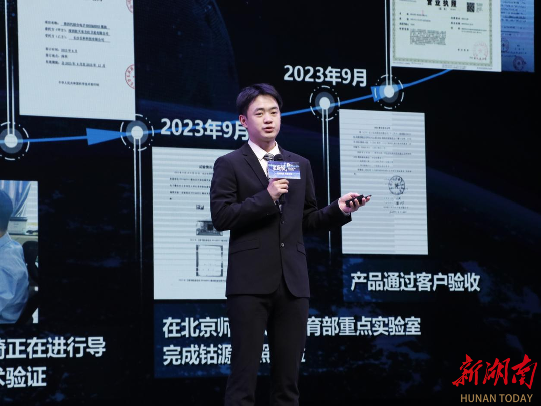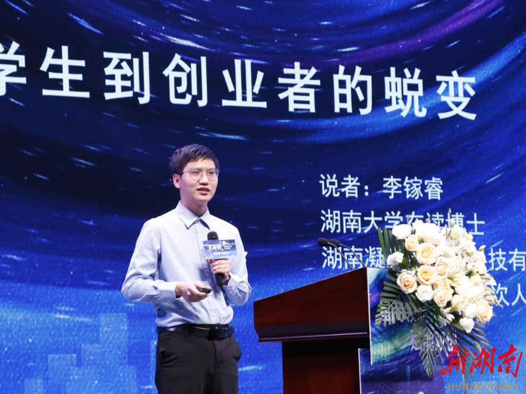 在优秀青年企业家分享环节,长沙学院创业校友代表,长沙芒果叔叔教育科技有限公司法人、品牌创始人周涛以《AI时代下的梦想突围战》为题,回顾从校园项目到年营收破千万的创业历程,强调“用情怀做教育,用技术破壁垒”的理念,鼓励学弟学妹厚植家国情怀,抓住AI+教育风口,深耕垂直领域;湖南凝英新材料科技有限公司创始人、执行董事李镓睿以《从学生到创业者的蜕变》为题,结合团队创立凝英科技、聚焦化学建材低碳技术研发的经历,剖析“产学研协同创新”的关键作用,并现场展示了校企联合实验室的最新成果,引发观众热烈讨论。