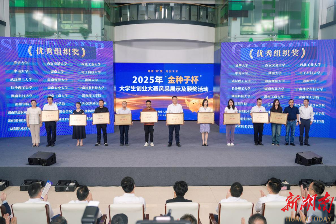 5月25日下午,2025年“金种子杯”大学生创业大赛风采展示及颁奖活动在三一集团“魔豆仓”创新中心举行,共有16个项目获金奖,32个项目获银奖,48个项目获铜奖,63个项目获优胜奖。来自长沙学院的创业团队斩获1金1银2铜,并获评“优秀组织奖”。