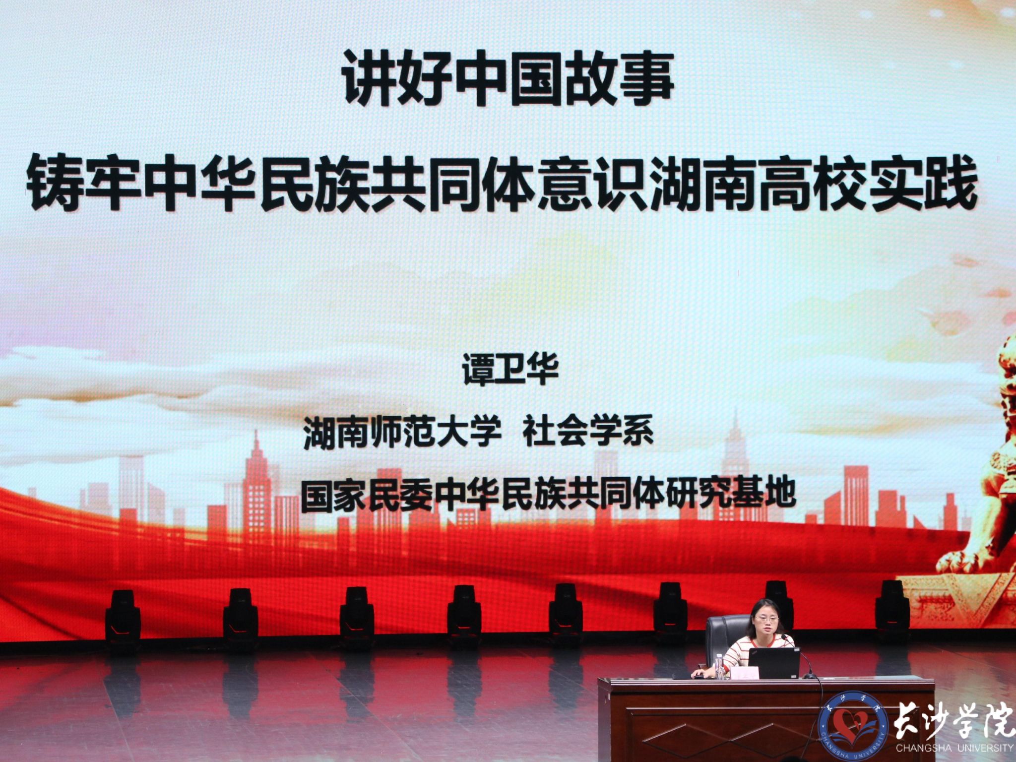 讲座中,谭卫华以其专业视角和实践经验,从新挑战、新思路、新作为三个维度展开,深入阐释了铸牢中华民族共同体意识的时代背景、实践路径以及湖南实践取得的相关工作成果,帮助师生对中华民族共同体意识的内涵、历史意义和现实价值有了更深刻的理解,让师生深切感受到中华民族共同体意识,是各民族在长期交流交融交往中形成的共同精神家园,是推动民族团结进步、实现中华民族伟大复兴的强大动力。