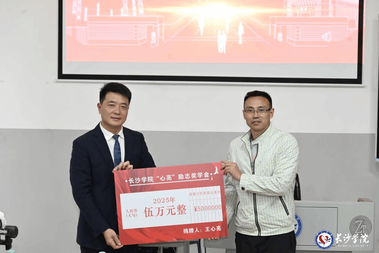 11月4日下午,长沙学院2025年“心亮”励志奖学金颁奖仪式在学校企业宣讲室举行。佳尝便饭创始人、“心亮”励志奖学金设立者、优秀校友王心亮及其家人出席颁奖仪式,为学校优秀学子发放荣誉证书及捐赠奖学金共计5万元。党委委员、副校长张世英出席活动并致辞。