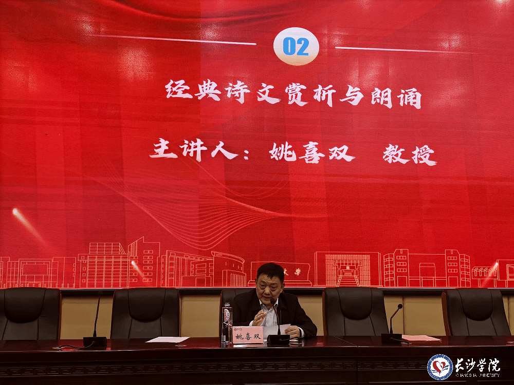 讲座中,姚喜双教授直击当前诗文朗诵普遍存在的“阅读结构散、重音过多、感情表面化”三大核心问题,从“经典诗文的特征”“经典诗文朗诵的方法”“具体经典诗文朗诵技巧”三个维度系统展开。他结合《岳阳楼记》《水调歌头・明月几时有》等经典篇目,尤其是毛泽东《七律・长征》《沁园春・长沙》《水调歌头・游泳》三篇诗作,详细讲解了朗诵逻辑与表达要点。同时,姚教授对现场同学的朗诵逐篇进行“一对一”精准指导,提出“科学划分朗诵段落、合理精简语言重音、强化表达连贯性”等实操方法,兼具专业性与实用性。互动环节中,他还现场纠正了观众发音、语气、情感表达等细节问题,生动诠释了经典诗文朗诵“形神兼备”的核心要义。