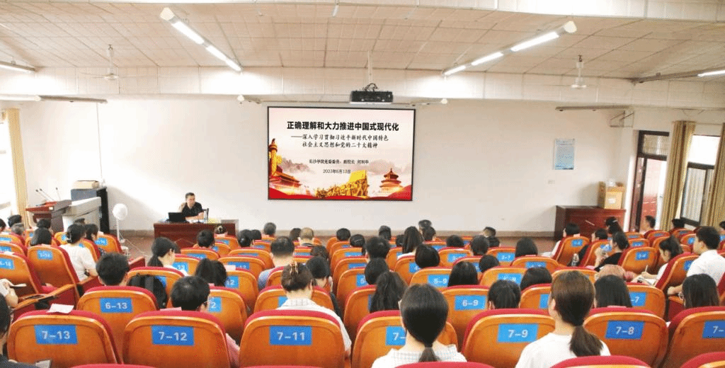 根据学校学习贯彻习近平新时代中国特色社会主义思想主题教育总体部署安排,6月13日下午,党委委员、副校长何利华以“正确理解和大力推进中国式现代化”为题,在宁静楼T2教室讲授主题教育专题党课。