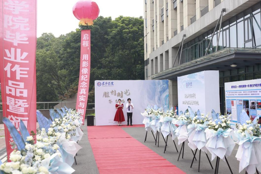 近日,长沙学院马栏山新媒体学院2023届毕业作品展暨颁奖典礼在力行楼演播厅举行。本次作品展是对广播电视编导、播音与主持艺术等专业学生四年成果展出,活动共展出《在路上》等10部影像作品,并颁发了最佳纪录片、最佳微电影等14个奖项。本次作品展出题材丰富多样、体现了新时代青年人用影像表达和思考的多维视野。一部优秀毕业作品是如何炼成的,长沙学院在应用型视频文创人才培养的探索过程中,给出了一份“长大”答卷。