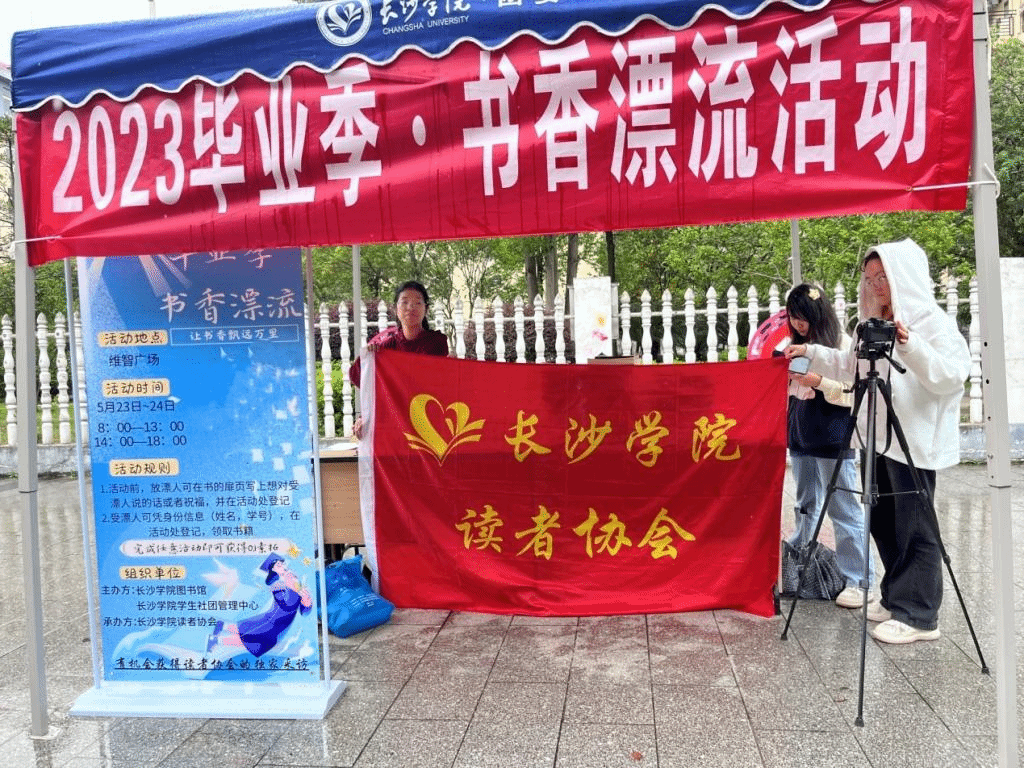 为传承毕业生良好的阅读习惯,图书馆读者协会还在勤思广场开展了“送一本好书,推开一扇亮窗”毕业季书香漂流活动,向2023届毕业生征集旧书进行漂流,毕业生可以在书的扉页写下对图书“新主人”的寄语。活动旨在推动毕业生与在校生以书为媒介,开启一场思想和知识的交流,让同学们共享读书的乐趣,传承对书本对知识的热爱和敬畏。