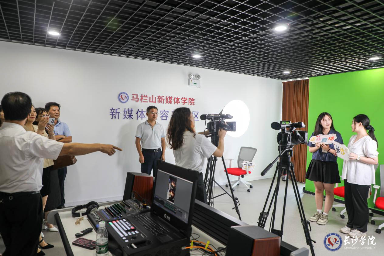 (张世英一行在马栏山新媒体学院短视频工厂了解直播实训情况)