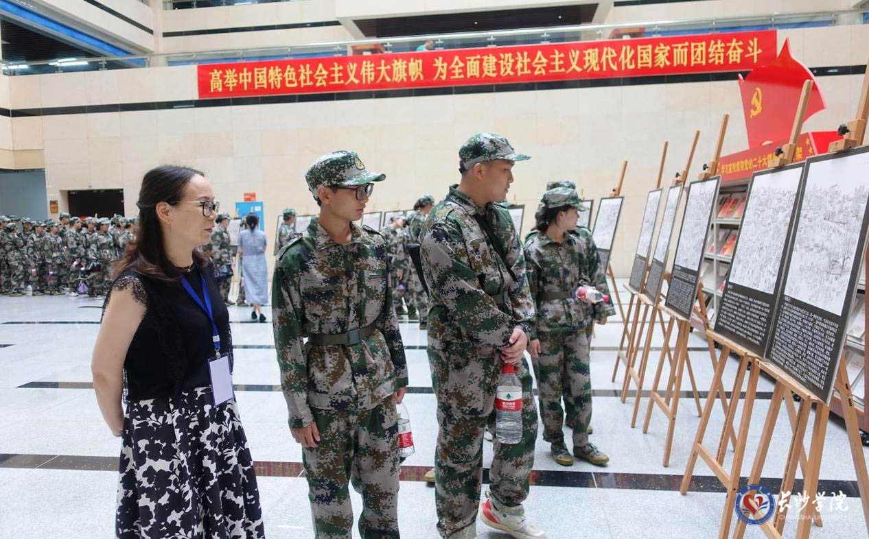 此外,为提升新生的美学素养,帮助新生更好了解网红长沙的前世今生,图书馆在一楼中庭举办《网红长沙的时光记忆——<老长沙全景图>》画展。作品由湖南省美术家协会理事、湖南省油画学会理事、我校艺术设计学院原院长柳玉教授创作。作品用长卷的形式,生动展现了80多年前的长沙城。图书馆分批次组织新生同学参观画展,跟随柳玉教授的画笔,一起探寻老长沙的景观建筑、市井风貌和寻常百姓众生相。