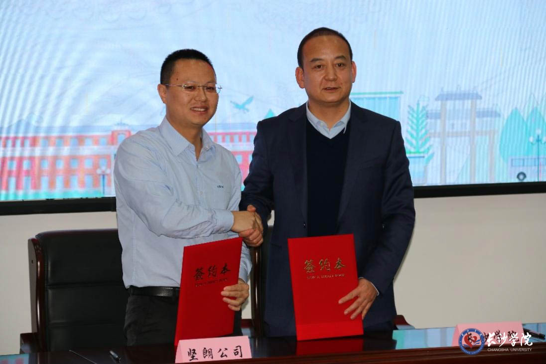 曾广胜代表学校与广东坚朗五金制品有限公司进行了英才订单班正式签约。现场还举行了英才订单班授班旗仪式。