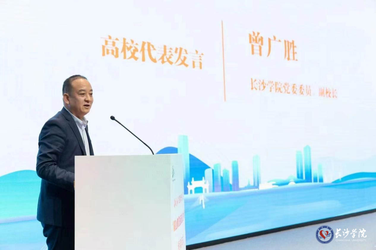 12月8日,2023年“红枫计划”暨“麓山杯”创新创业大赛总决赛在湖南湘江新区岳麓科创港举行,学校党委委员、副校长曾广胜作为高校代表出席总决赛颁奖仪式并讲话。