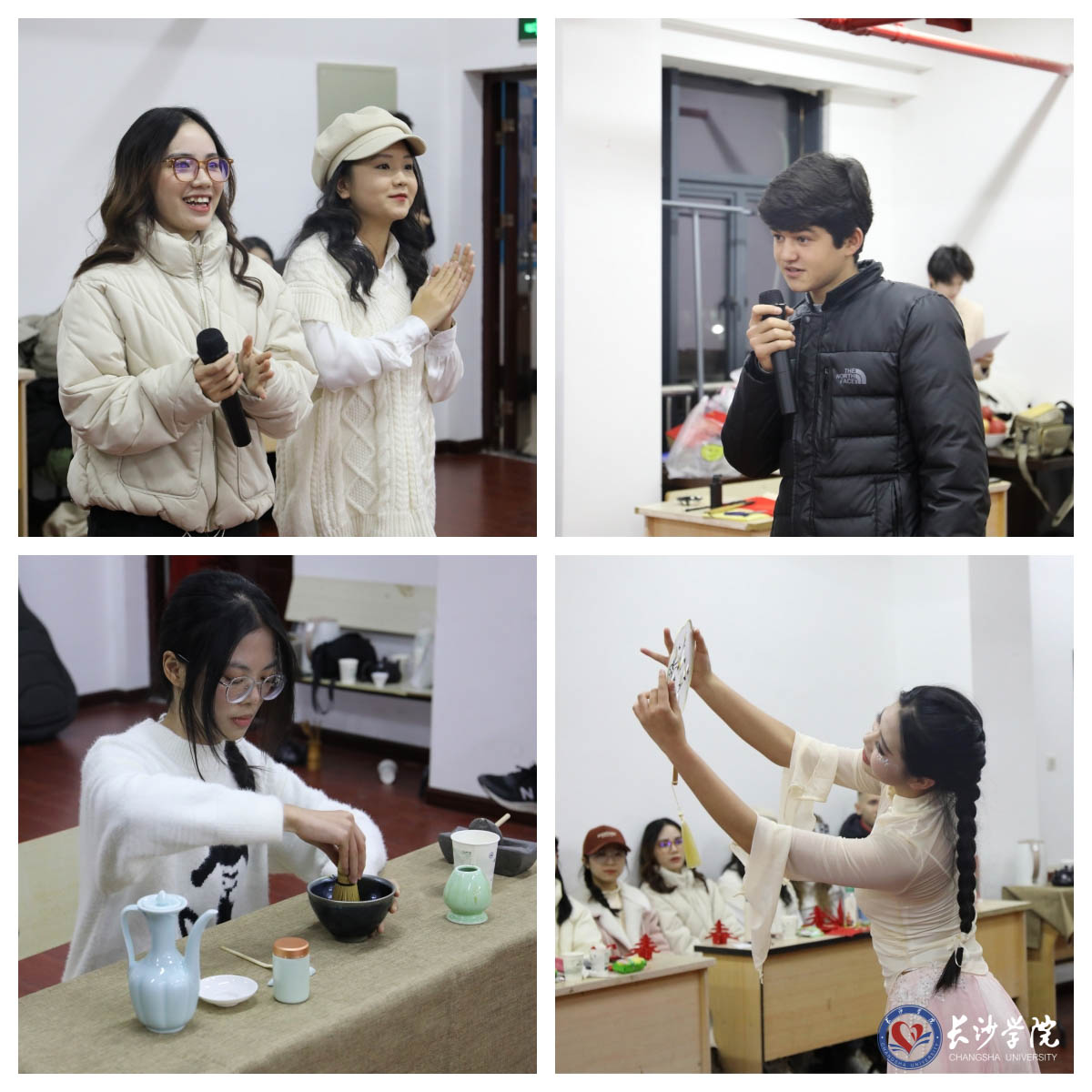 联谊会以“湘聚长大,喜迎龙年”为主题,来自不同国家和文化背景的学生们欢聚一堂,展示各自才艺。来自越南的谭翠贤、阮妙泠带来经典中文歌曲《月亮代表我的心》;来自塔吉克斯坦的西龙演唱了自己国家的传统民族音乐;莫和那表演了精彩的塔吉克斯坦民族舞蹈;来自俄罗斯的安娜、卡佳、温绮月演唱了俄罗斯歌曲,并表演了跨年情景剧。我校各院系同学也带来了精彩的表演,歌曲、舞蹈、吉他、书法、茶艺、剪纸、朗诵、情景剧等节目精彩纷呈。
