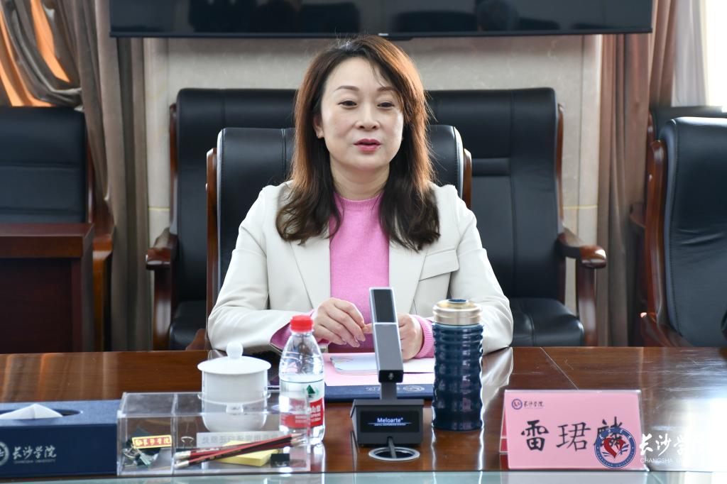 雷珺麟对我校的热情接待表示感谢,并对我校近几年取得的成就表示赞赏。她简要介绍了湖南大众传媒职业技术学院的基本情况,并表示希望借此机会,学习借鉴我校在科研工作方面的先进做法和取得的宝贵经验,加强沟通合作,推动两校科研工作再上新台阶。