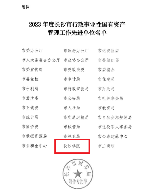 近日,长沙市财政局召开了全市行政事业性国有资产管理工作总结会议,会议对2023年度全市资产管理专项工作成绩突出的集体予以了表彰。我校获评2023年度长沙市行政事业性国有资产管理工作先进单位,是唯一一所获得该表彰的学校。