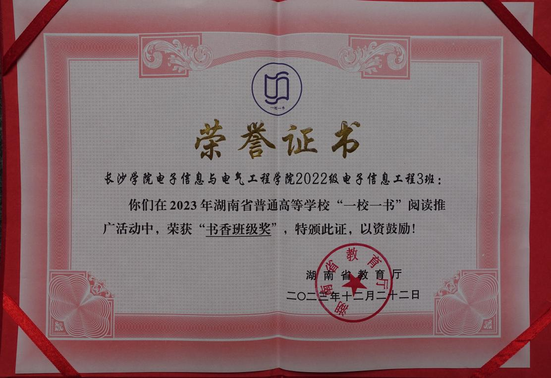 近日,湖南省教育厅发布了《关于2023年全省普通高等学校“一校一书”阅读推广活动评选结果的通报》(湘教通〔2023〕378号),我校李康轩等共五位同学获“读书心得奖”;2022级电子信息工程3班获“书香班级奖”;生物与化学工程学院林涵老师指导的案例《书香环保低碳生活——守护绿水青山,书写时代答卷》获“创新案例奖”;图书馆馆员张研荣获“优秀阅读推广人”称号。