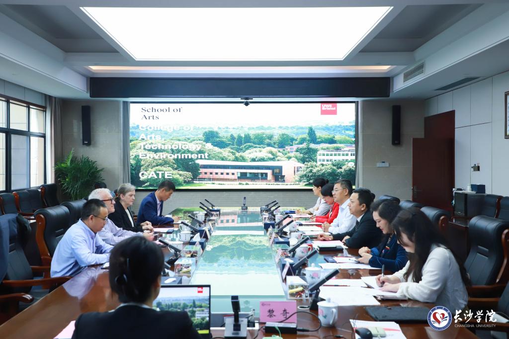 托德·波顿对学校的热情接待表示感谢,并介绍了西英格兰大学和艺术、技术与环境学院的基本情况。杰奎琳·巴特勒就艺术学院学科专业、产教融合、学生发展等方面的情况和特色亮点作了详细介绍。随后,马栏山新媒体学院党总支书记徐长梅、艺术设计学院院长胡友慧分别介绍了所在学院的情况和办学成果。双方经过意见交换和充分讨论,达成了初步合作意向。
