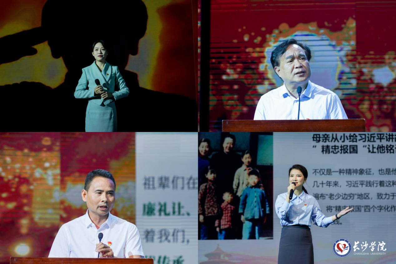 用音乐上党课,用艺术讲党史,传廉洁文化,育时代新人!这堂党课分为“人民的儿子”“精神的火焰”“书香‘博士村’”“不负‘娘的心’”四个篇章。中共韶山市委党校、韶山红色教育培训基地教师毛敏展示并解读了毛泽东长子毛岸英的一封家书,带领大家感悟革命先辈的初心情怀和觉悟恪守;我校马克思主义学院夏湘远教授探源湖湘文脉,生动诠释了湖湘先贤志洁行廉的精神内涵;浏阳市秧田村党总支书记邓加长分享了秧田村这个“博士村”勤耕苦读、世代承袭“读书兴家”的文化传统;我校基层党务工作者刘晗从一个针线包讲述了习近平总书记始终把人民放在心中最高位置,不负人民、不负“娘的心”的动人故事。宣讲中,音乐学院师生还带来了合唱节目《追寻》,舞蹈节目《家书》《家训》《妈妈,我想给你洗脚》,独唱节目《我们的荣耀》等,将四位宣讲人的动情分享紧密串联,节目设置契合宣讲事迹,不仅赞颂了廉洁奉公的高尚情操,也表达了对美好生活的向往和追求。