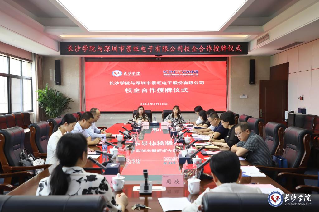 会上,校企双方代表正式签署了校企合作战略协议,并为长沙学院和深圳市景旺电子股份有限公司“人才培养与产学研合作基地”共同揭牌。