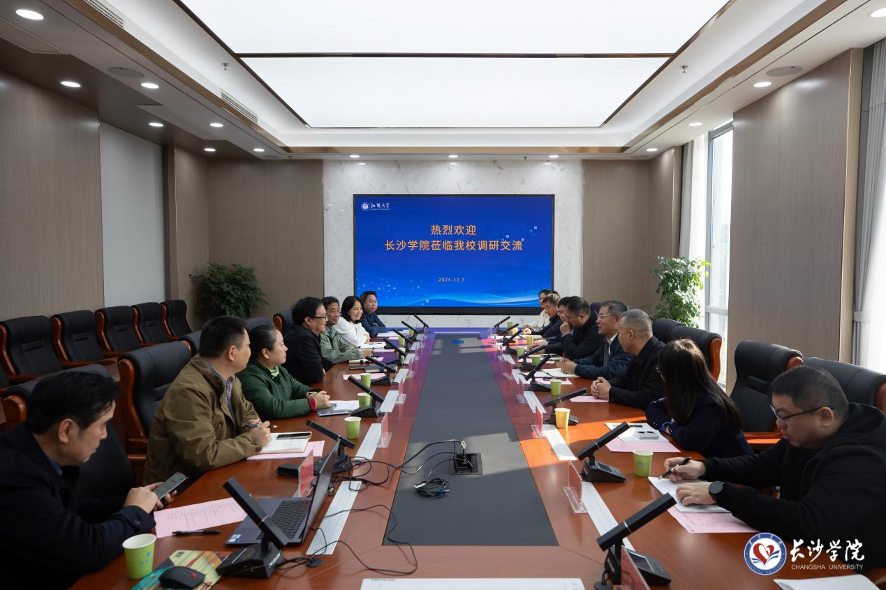 张世英对江汉大学的热情接待和在工作上提供的支持帮助表示感谢。他指出,江汉大学与长沙学院的管理体制相同,发展历程相似,江大的改革发展在应用型本科院校中具有领先性和示范意义,长沙学院教育教学相关部门将认真学习消化江汉大学教育教学的宝贵经验,加紧追赶步伐,突出内涵发展、创新发展和特色发展。