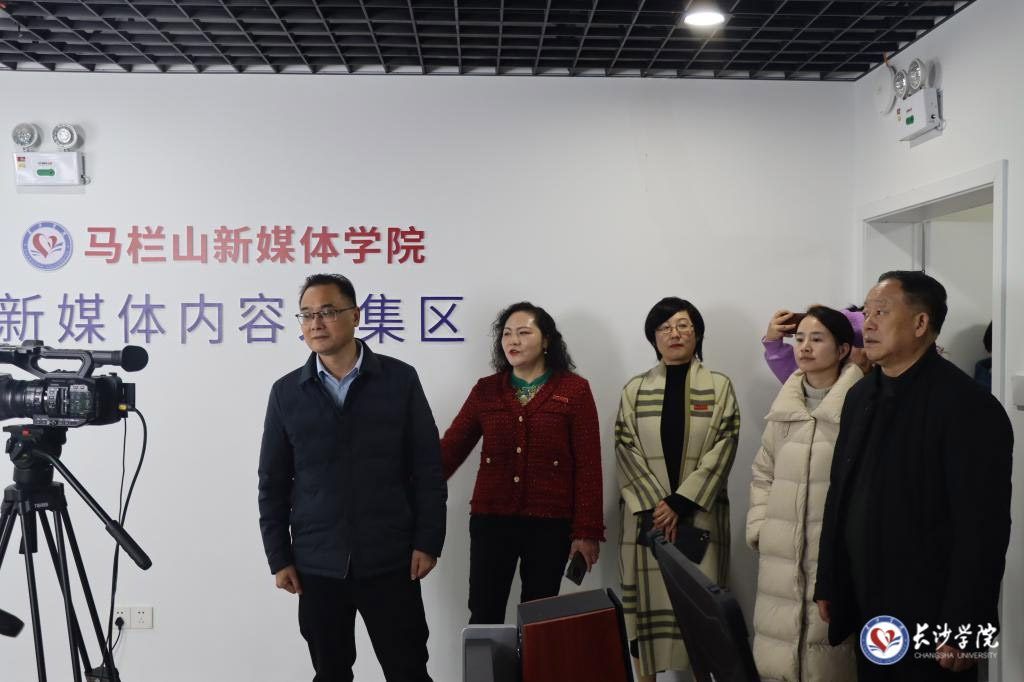 (参观马栏山新媒体学院全媒体实验实训中心和短视频工厂)