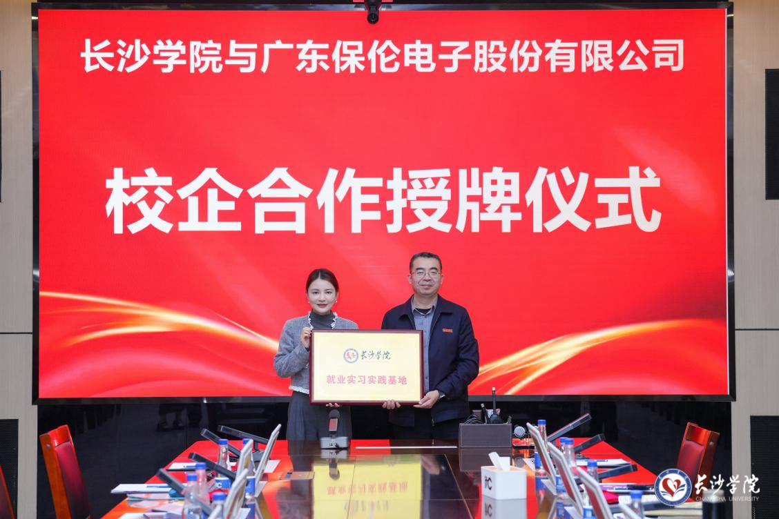 何利华表示,期待进一步加强与相关单位的交流与合作,共同培养符合市场需求的专业人才。期间,何利华还向广东保伦电子股份有限公司颁授就业实习实践基地牌匾。