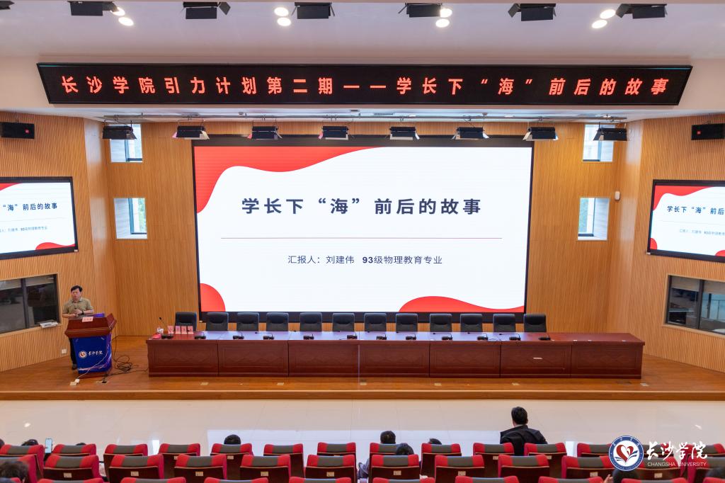 4月22日下午,原长沙大学93级物理教育专业毕业生刘建伟受邀回校作主题讲座,与在校同学分享创新创业的故事。