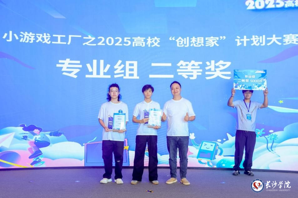 7月4日下午,“小游戏工厂之2025高校‘创想家’计划大赛”总决赛在芒果马栏山广场举行,16支队伍站上路演舞台,展现湖南小游戏产业“新生代”风采。我校艺术设计学院共有三支队伍进入决赛。其中,廖宇浩、吴雨琪、黄晟晖、娄栩豪和周舟团队的作品《皮影奇谭》获专业组二等奖;王金鑫、任敏旗、丁梓铱和杜怡然团队的作品《速写防线》获创意组二等奖。林振祥、陈星佐、符雅齐和尚锡汶团队凭借在《小猫勇闯100层》作品的优异表现,在决赛现场与网易(长沙)数字产业中心签署了孵化协议,获得工商注册、办公场地等方面创业扶持,并将享受专业团队助力项目加速落地转化,迈出了从“创意作品”到“商业产品”的关键一步。