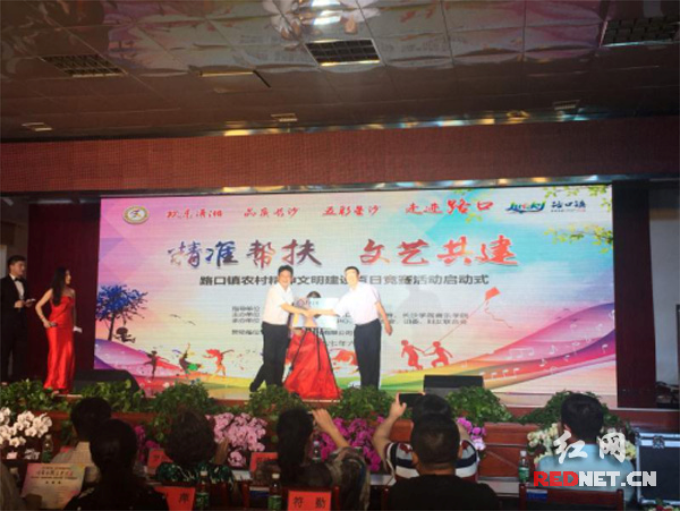 6月25日晚,由长沙县路口镇、长沙学院音乐学院共同主办的“精准帮扶 文艺共建”——路口镇农村精神文明建设百日竞赛活动暨全国高校实践育人创新创业基地揭牌仪式在路口镇文化广场正式启动。在仪式现场,活动主办方还向村民群众详细解读了此次文化帮扶合作项目的具体内容,7月份学院、镇、村三方将就今后如何丰富村民的精神文化生活、脱贫致富如何从“物质”到“精神”等问题找到契合点。