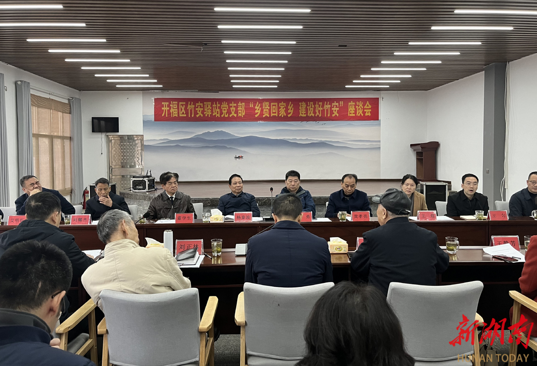 授牌仪式结束后,“乡贤回家乡 建设好竹安”座谈会召开,省、市、区关工委与开福区乡村经济发展促进会就推进竹安产业发展进行交流。