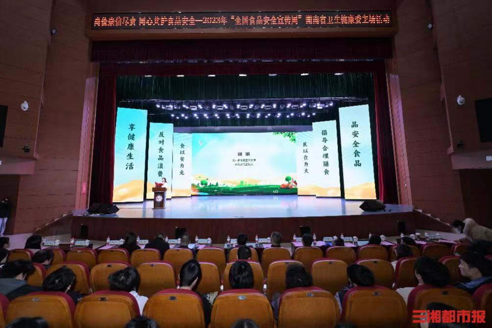三湘都市报12月11日讯(全媒体记者李琪 通讯员 徐勤 何冰)今日上午,由湖南省卫健委主办、湖南省卫生健康委健康教育宣传中心承办的2023年“全国食品安全宣传周”主场活动在长沙学院举行。今年全国食品安全宣传周的活动主题是“尚俭崇信尽责 同心共护食品安全”,旨在深入宣传动员,强化食品安全人人有责、共建共治共享理念,弘扬中华民族勤俭节约的传统美德,倡导“厉行节约、反对浪费”社会风尚,切实维护三湘人民“舌尖上的安全”。活动以同步直播形式进行线上宣传,有46.1万+人在线观看活动盛况。