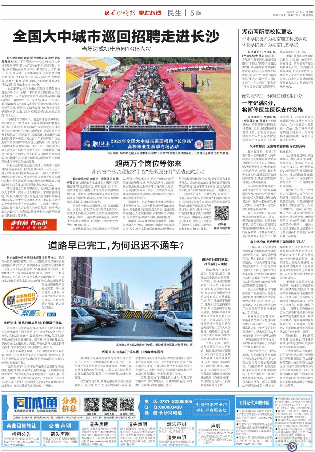 长沙晚报10月18日讯(全媒体记者 李静 通讯员 陈盼)18日,“职”引未来——2023年全国大中城市巡回招聘“长沙站”活动在长沙学院举行。参与此次招聘的企业共184家,来自河北、辽宁、浙江、四川、湖南等10个省市和地区,其中长沙市内企业117家、外地企业67家,涉及制造业、生物医药、房地产、教育、营销、物流、互联网科技等众多行业,提供各类就业岗位4600个。