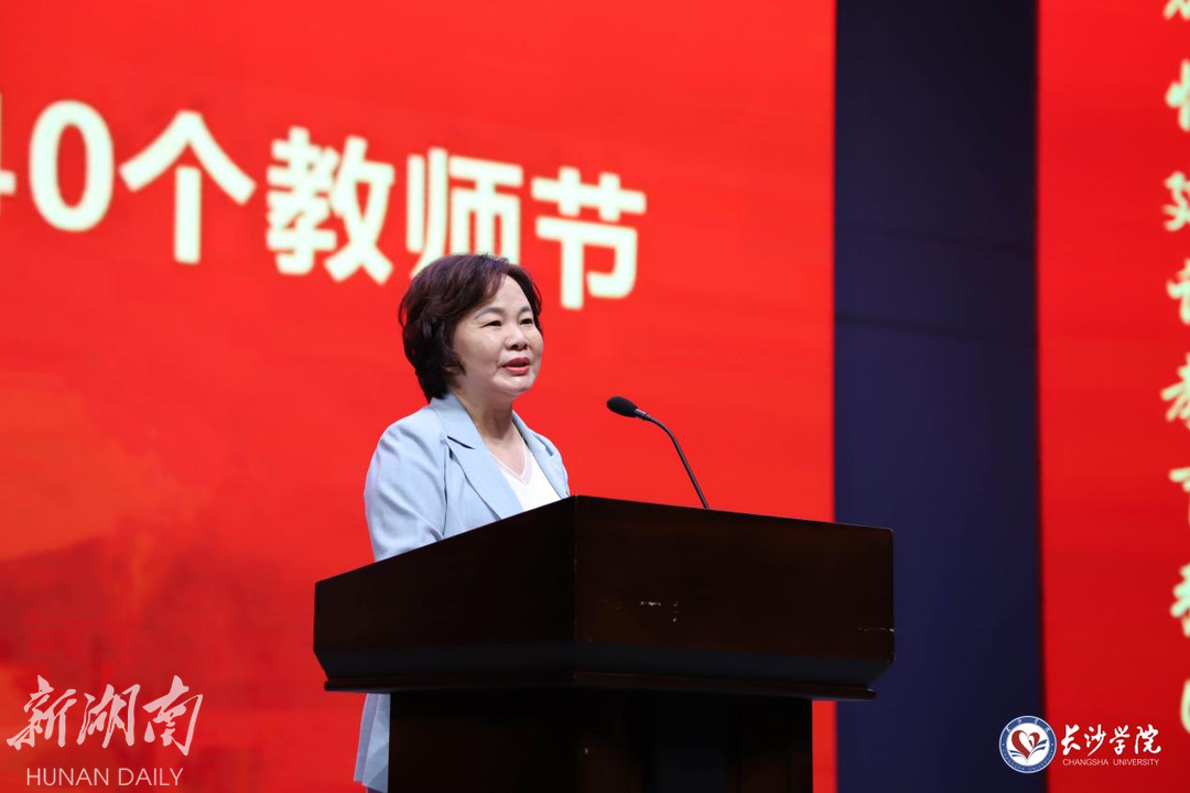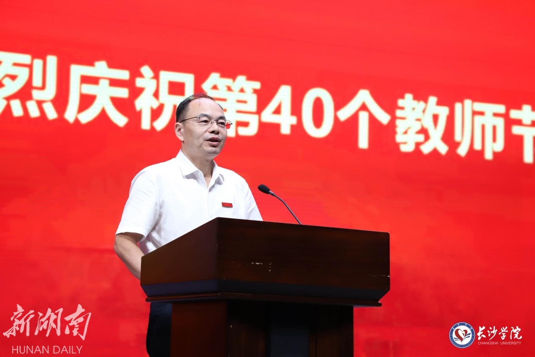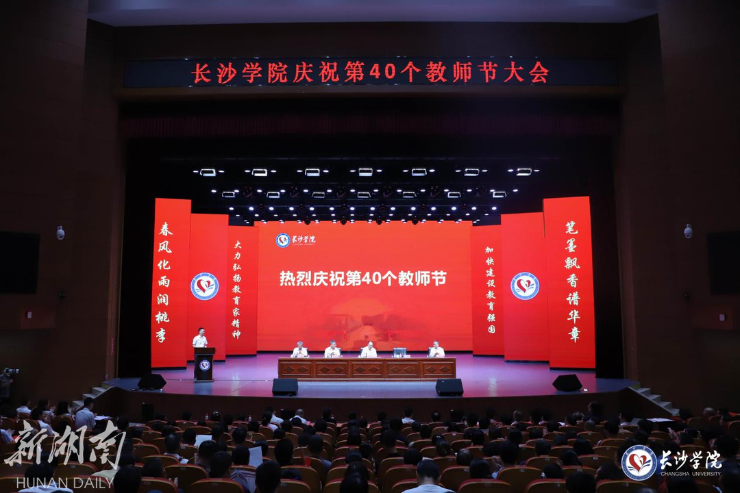 9月10日下午,长沙学院在学生活动中心举行庆祝第40个教师节大会。大会以“大力弘扬教育家精神,加快建设教育强国”为主题,向学校全体教师致以节日的祝福和崇高的敬意。长沙学院党委书记杨小云出席大会并讲话,党委副书记刘寒波主持大会。