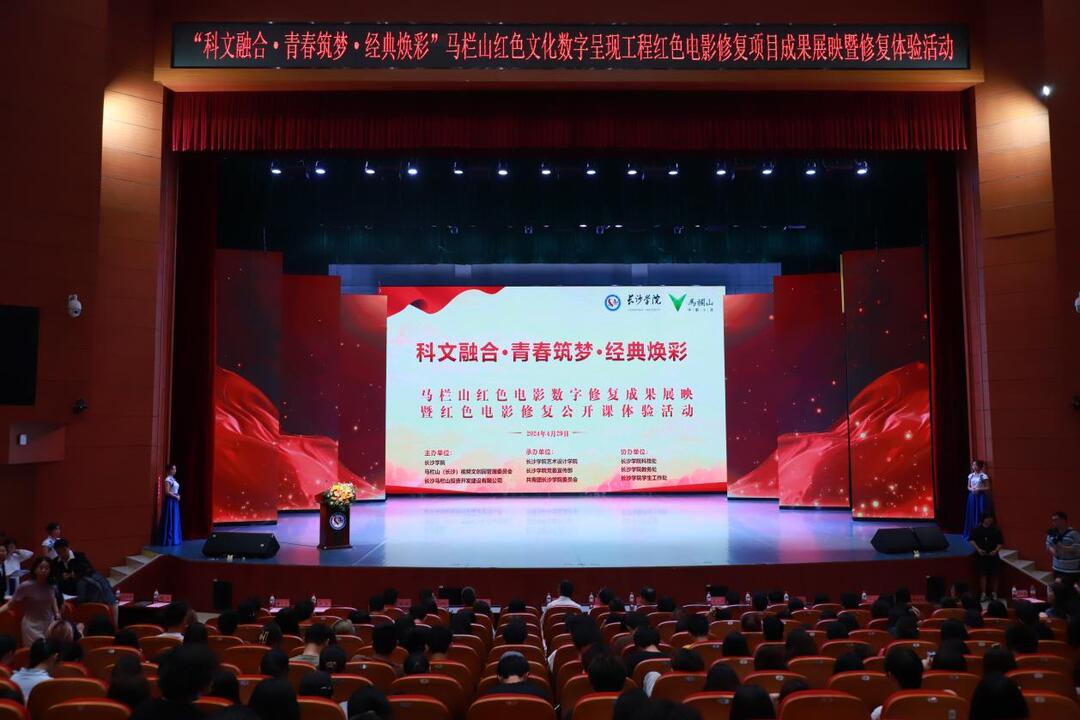 4月29日上午,“科文融合・青春筑梦・经典焕彩”马栏山红色电影数字修复成果展映暨红色电影修复公开体验课活动在长沙学院学生活动中心举行。长沙市委宣传部、马栏山视频文创园、长沙马栏山投资开发建设有限公司及长沙学院校领导、师生400余人参加活动。