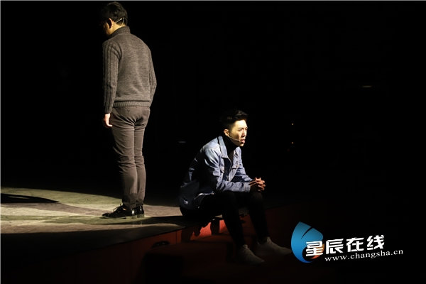(12月16日晚,长沙学院影视艺术与文化传播学院老师荣斌指导的话剧《时间都去哪儿了》和《一口唾沫一个钉》在芙蓉国剧场进行了专场公演。)