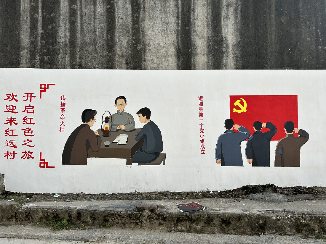 在红远村,实践团采用结合中国画线面结合的表现风格,以该村红色历史时间线为脉络,用一个个生动形象的绘画故事讲述红远村的历史文化与未来展望。让村史跃然“墙”上,成为可读的画卷,力争塑造成为“网红”打卡点。